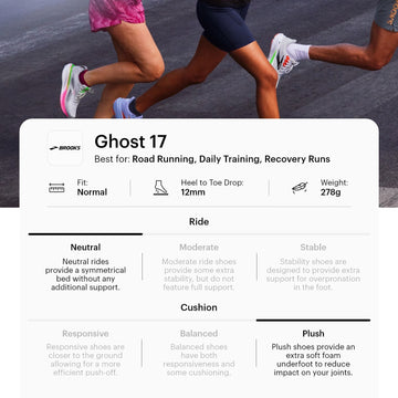 Embrace every mile with the Brooks Ghost 17, designed for balanced softness and smooth transitions on your daily runs. Featuring nitrogen-infused DNA LOFT v3 cushioning for lighter, more durable comfort underfoot, paired with a breathable engineered mesh upper for enhanced fit and ventilation.