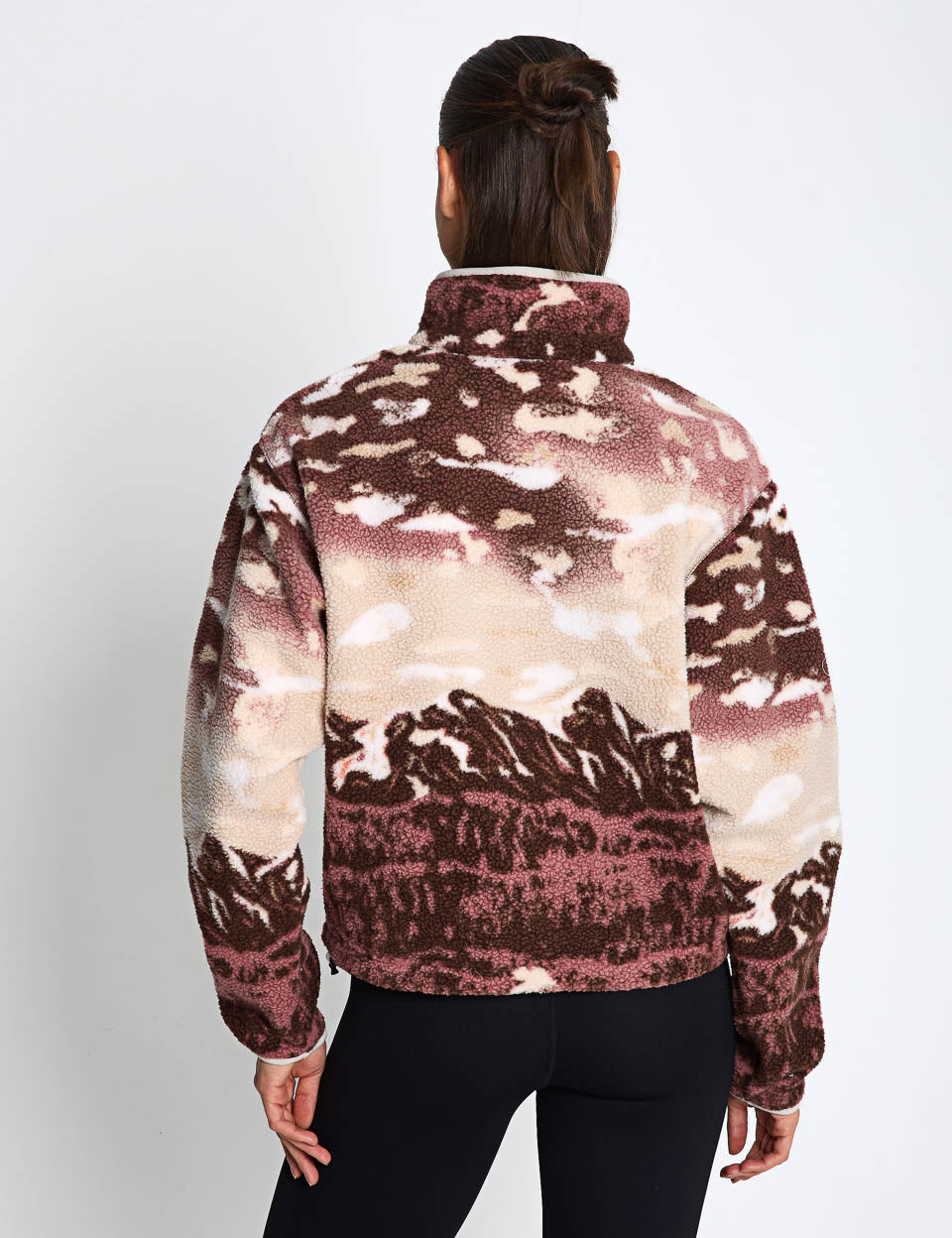 The Helvetia II Cropped Sherpa Half Snap Printed Fleece is designed with a zippered chest pocket to secure small items, while the drawcord-adjustable hem keeps out chilly air. Stretch binding on the collar and cuffs ensures a comfortable, snug fit.