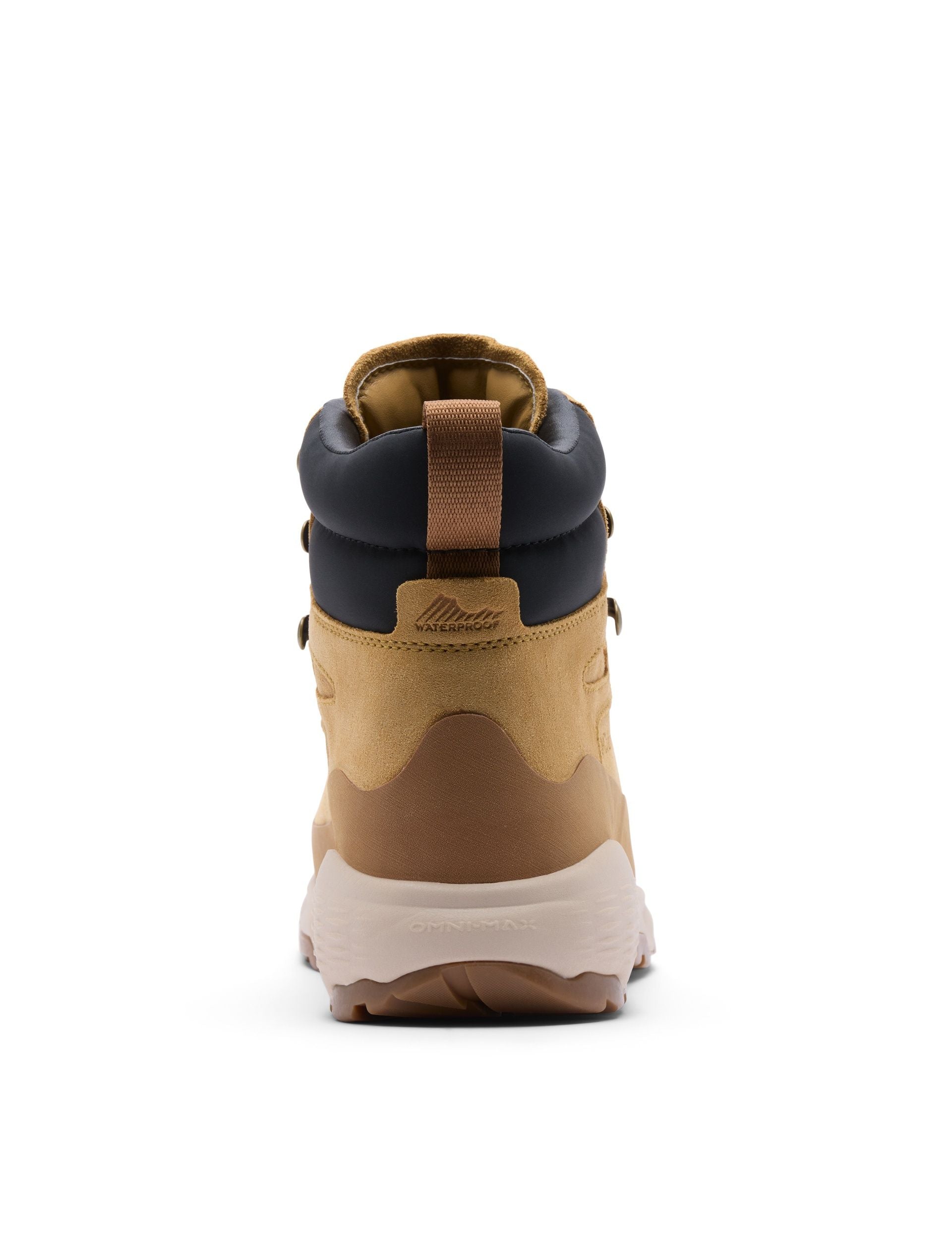 Suede upper with metal hardware and protective rubber rand; Omni-Tech waterproof breathable construction; Techlite+ midsole with Omni-Max system; Techlite insole; Omni-Grip non-marking rubber outsole.