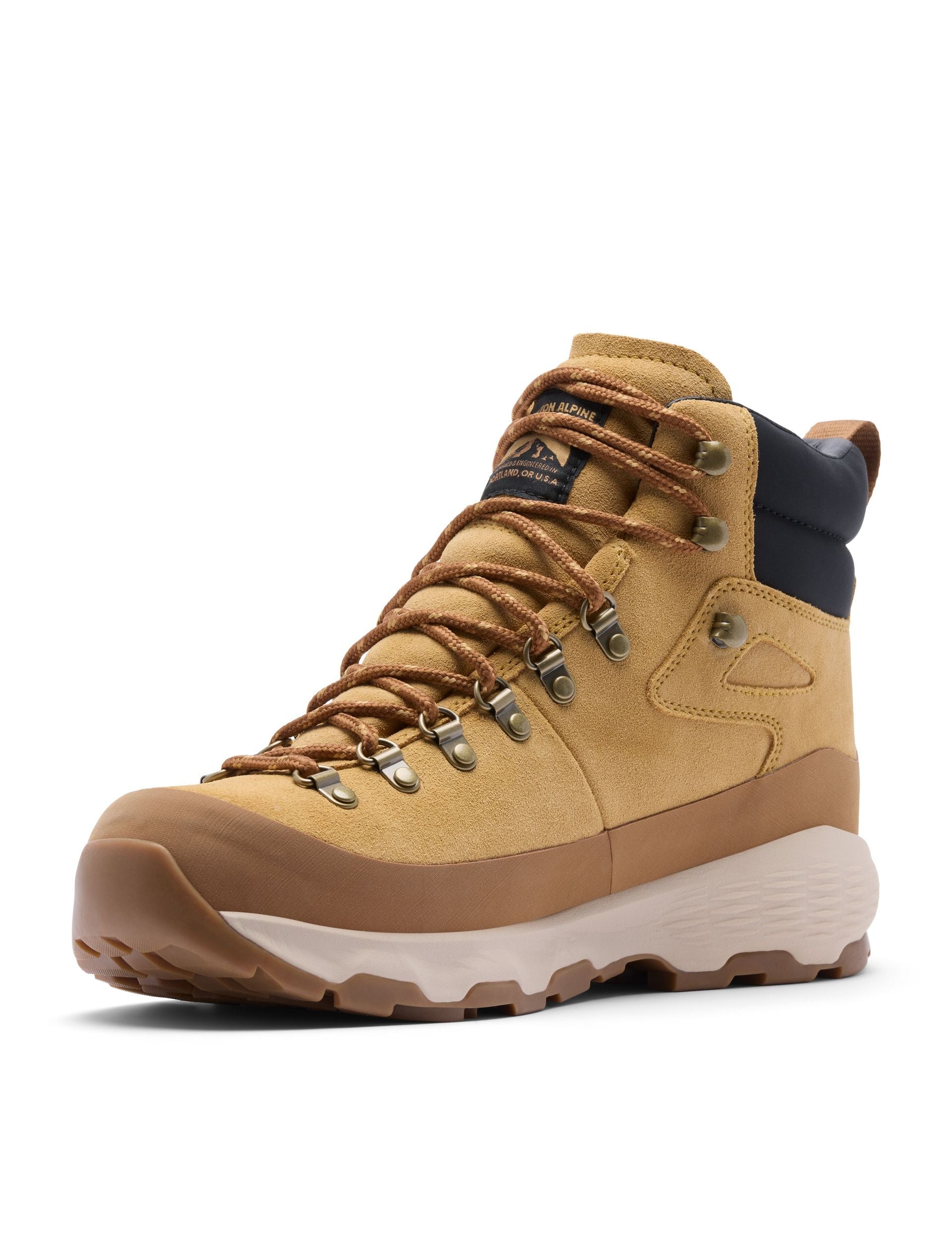 Built for city-to-peak adventures, the Newton Alpine PT in Curry/Black blends a heritage alpine aesthetic with dependable trail readiness. A rugged upper with wraparound rand resists scuffs, while a secure mid-cut and padded collar deliver a supportive, locked-in feel. Versatile for commutes, park paths and weekend hikes.