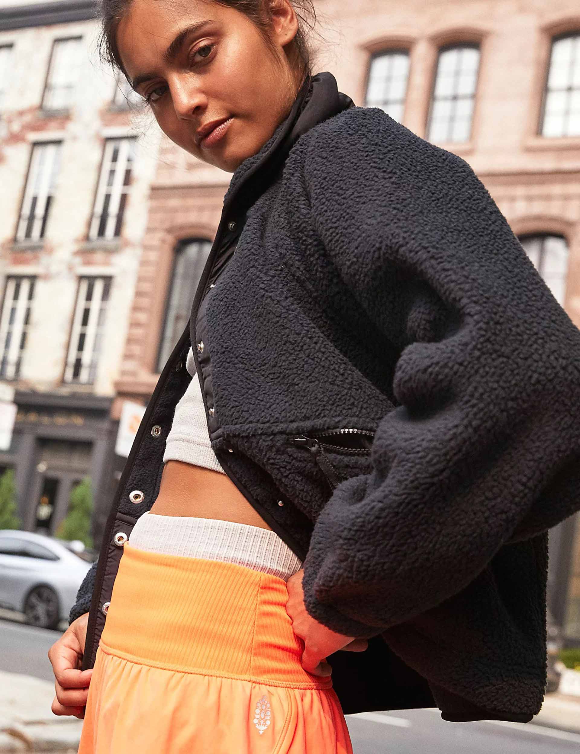 Prepare for cooler climes in Free People Movement's black Hit The Slopes Jacket. With a fleecy outer, contrasting zip pocket details and soft feel, it keeps you warm and cosy when the weather turns.