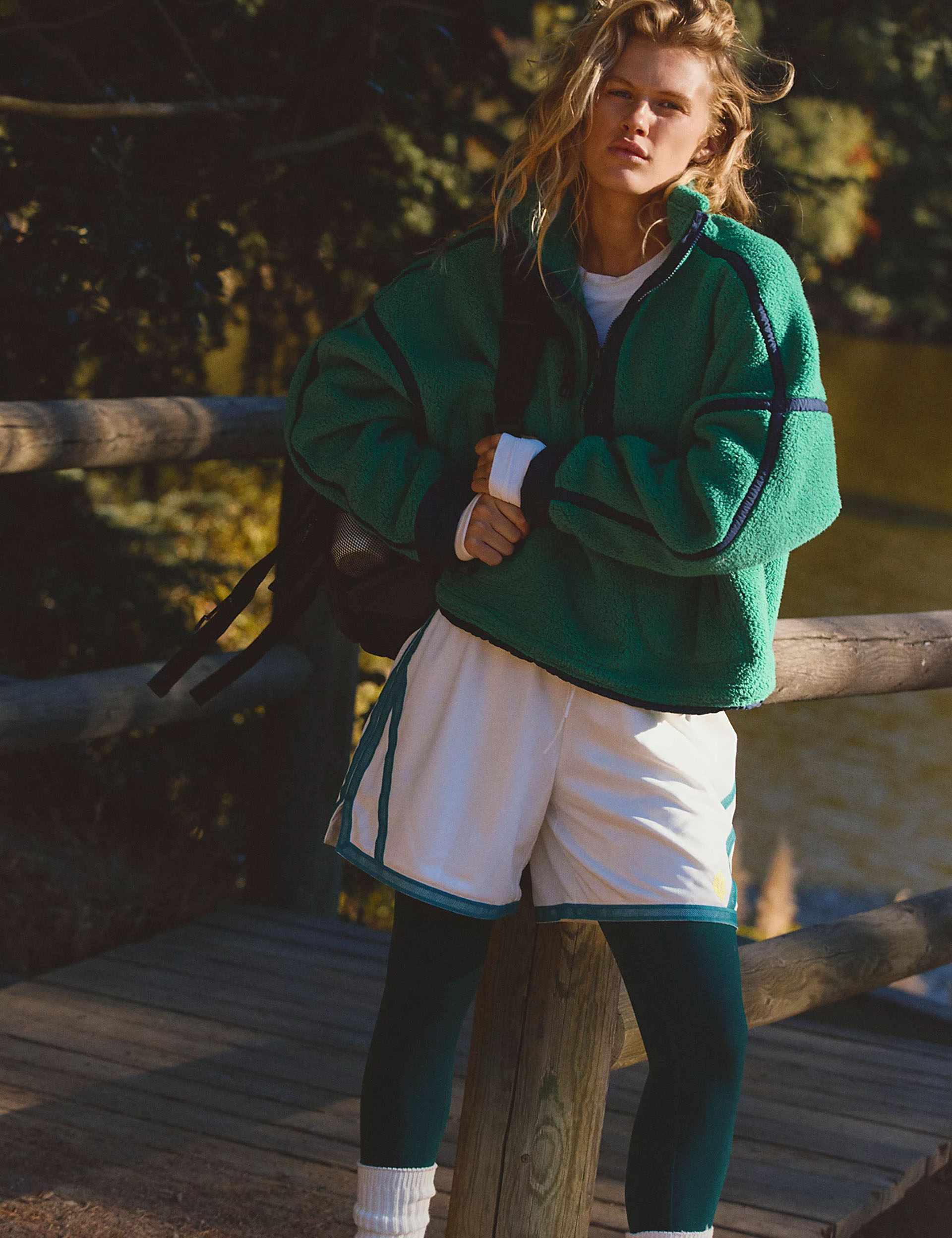• High neckline with half-zip closure