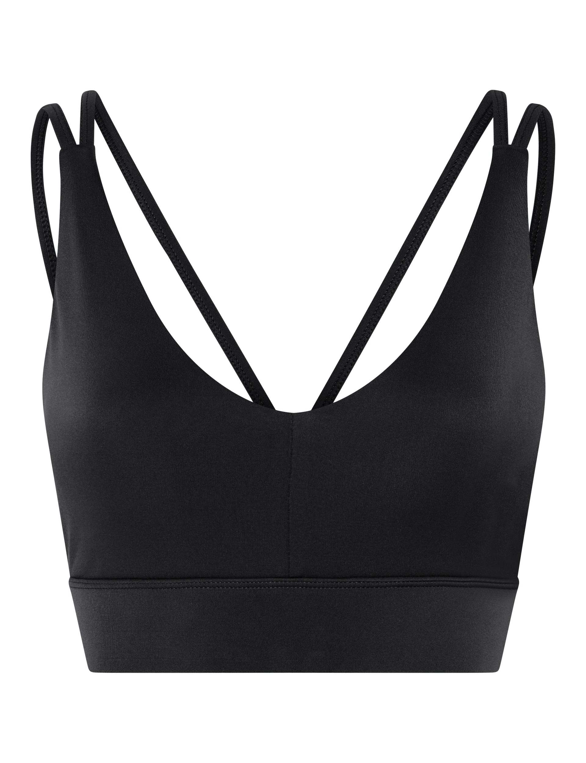 The Gigi Strappy Bra in Black features a soft V-neckline that creates a flattering, feminine look without compromising comfort. Crafted from specialized FLOAT fabric, this style keeps you cool and confident from start to finish.