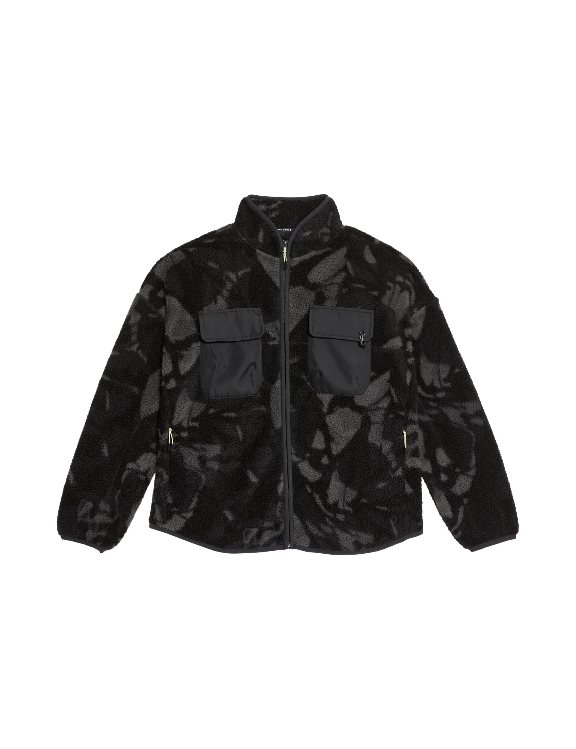 Stay cosy on outdoor adventures with the Borg Printed Funnel Neck Zip Up Fleece Jacket, where a cosy funnel neck and mountain print design add a trendy touch to rugged trails. Its lined interior, carabiner attachment, and secure pockets keep you warm and prepared, perfect for chilly adventures.