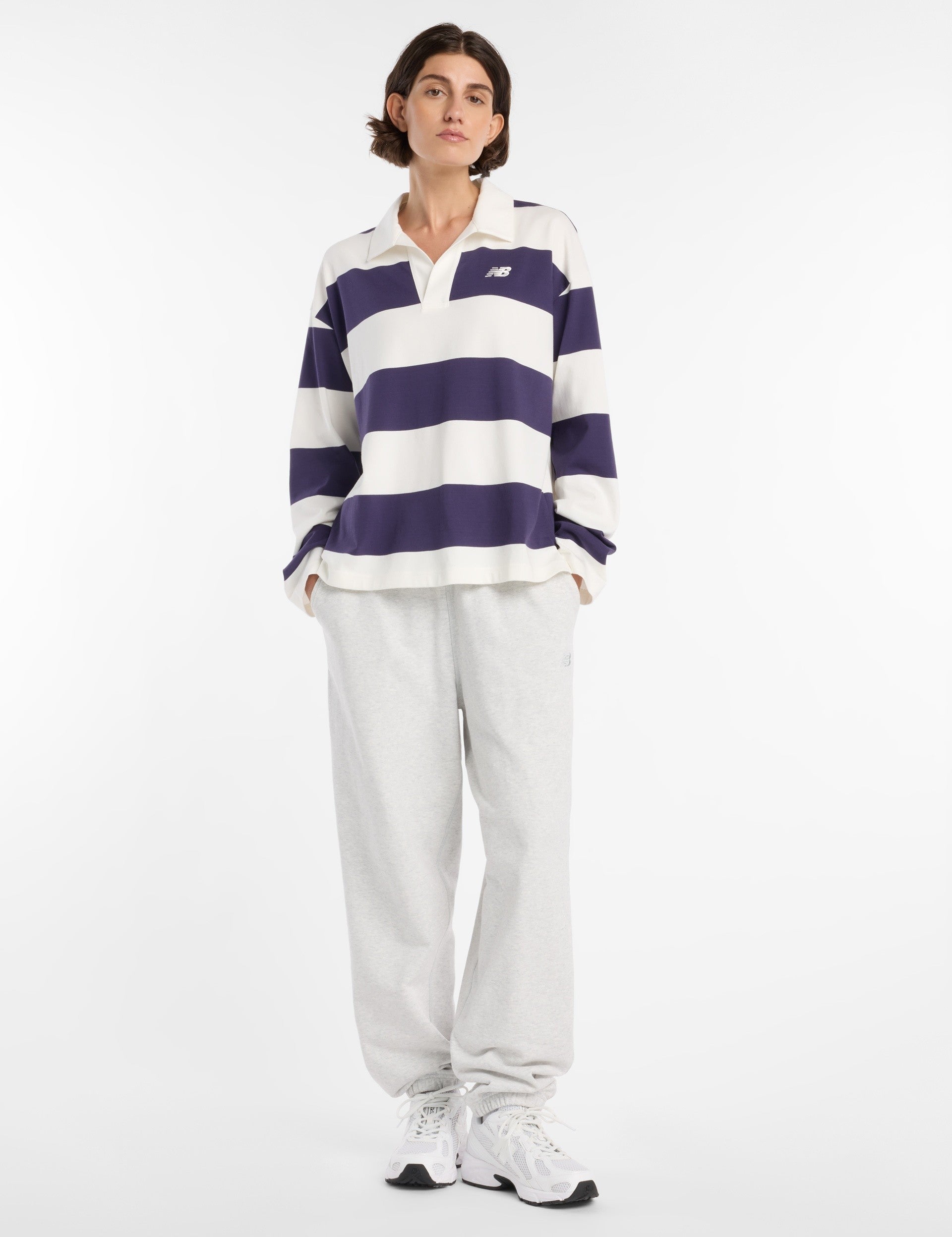 The New Balance Rugby Long Sleeve in Boysenberry delivers classic comfort and style with a modern edge. Designed for everyday wear, this top provides a spacious feel and extra room through its exaggerated silhouette.