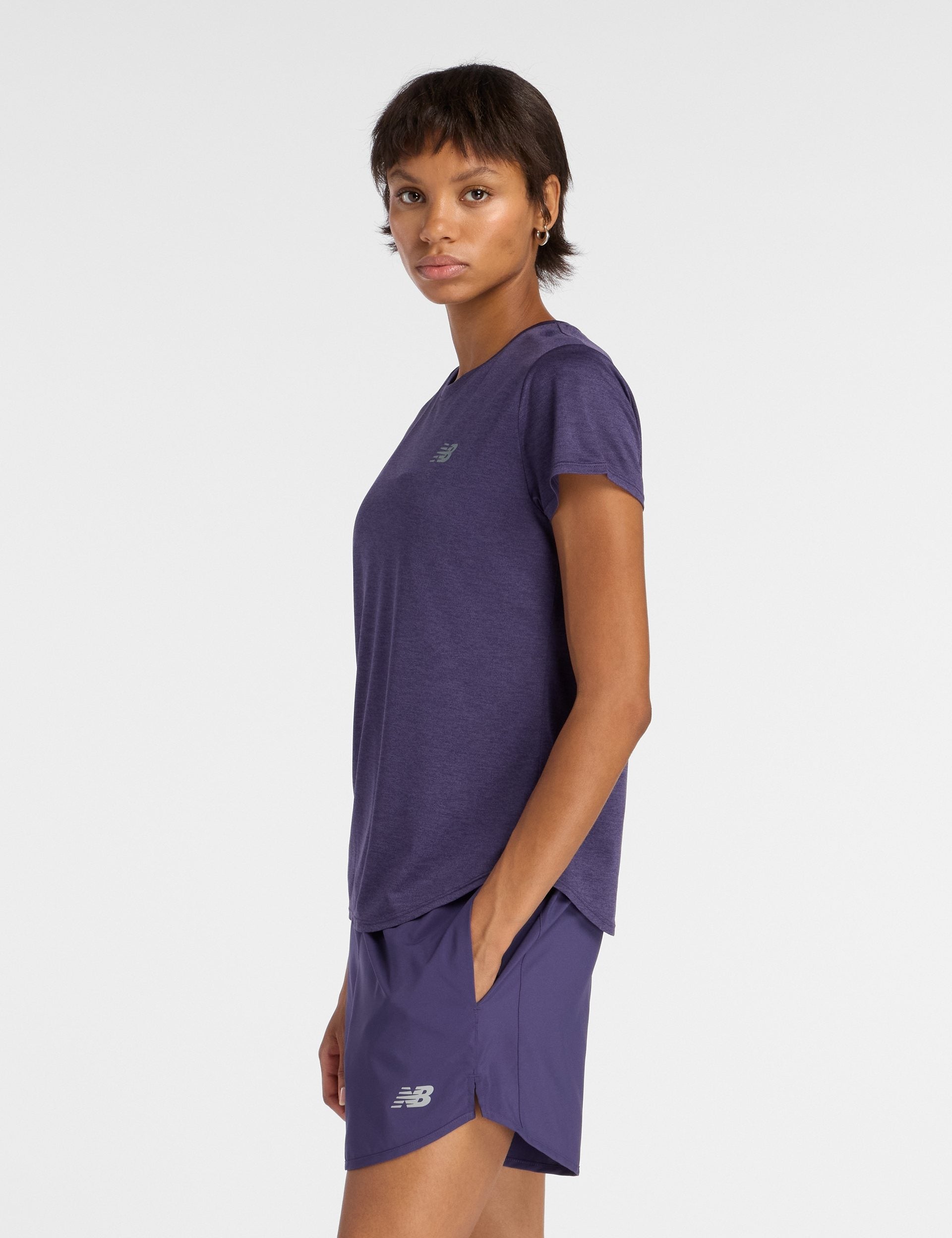 Shine in the Sport Core Heather T-Shirt, crafted from a soft heathered knit with NB DRY technology to keep you dry. An athletic fit and scalloped hem flatter your form, while cap sleeves add a chic finish to any outfit, perfect for any adventure.
