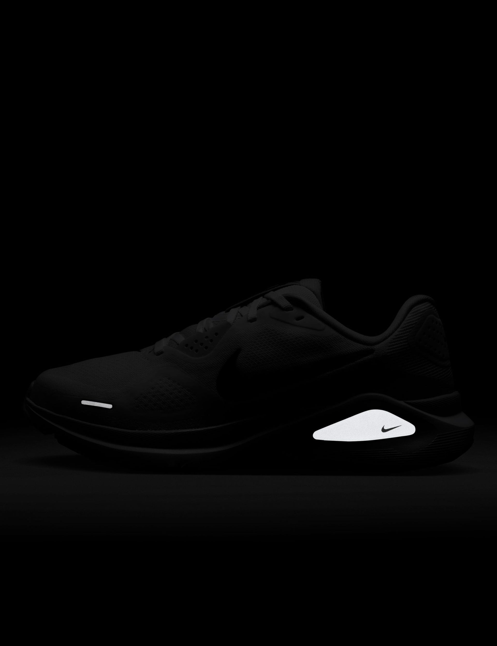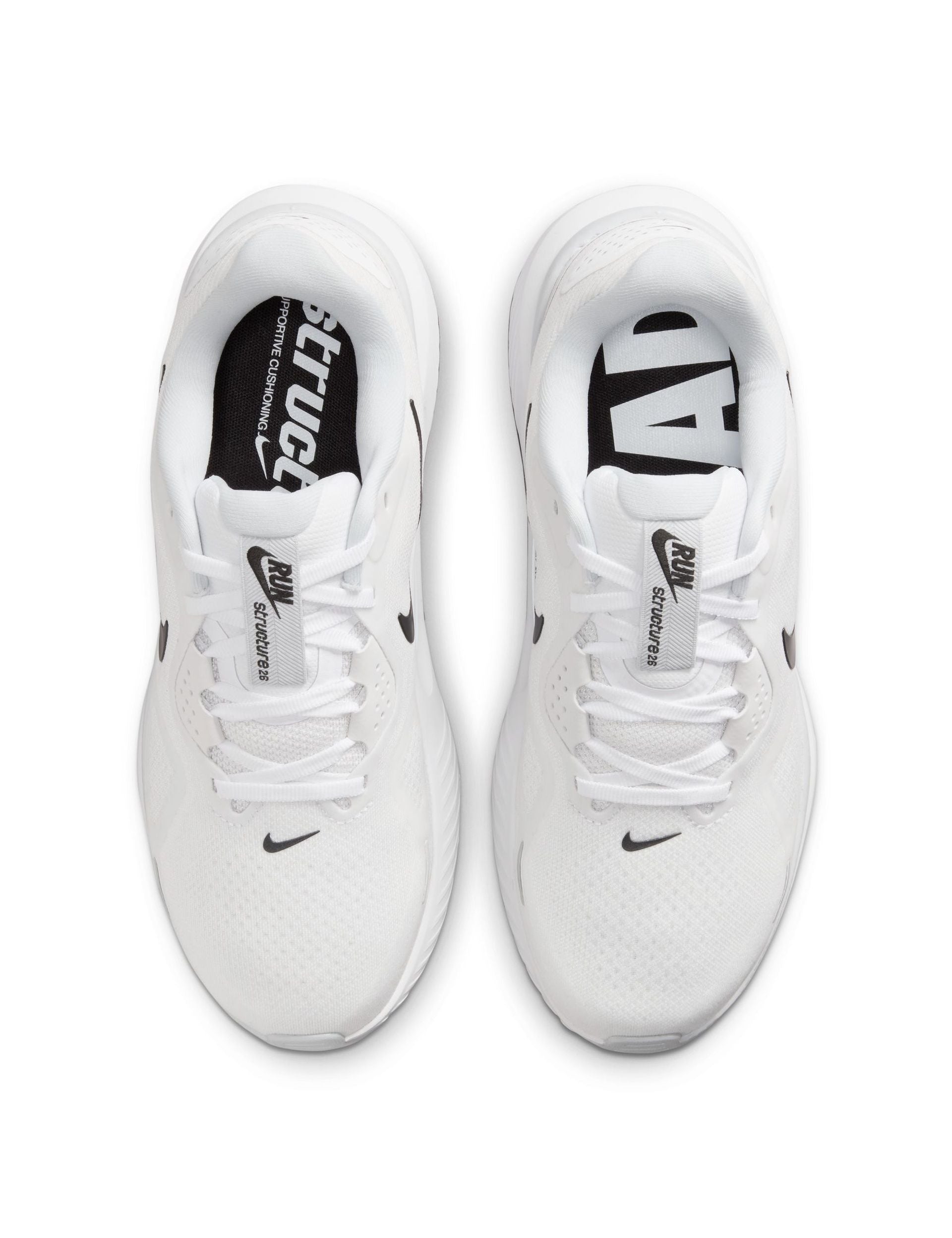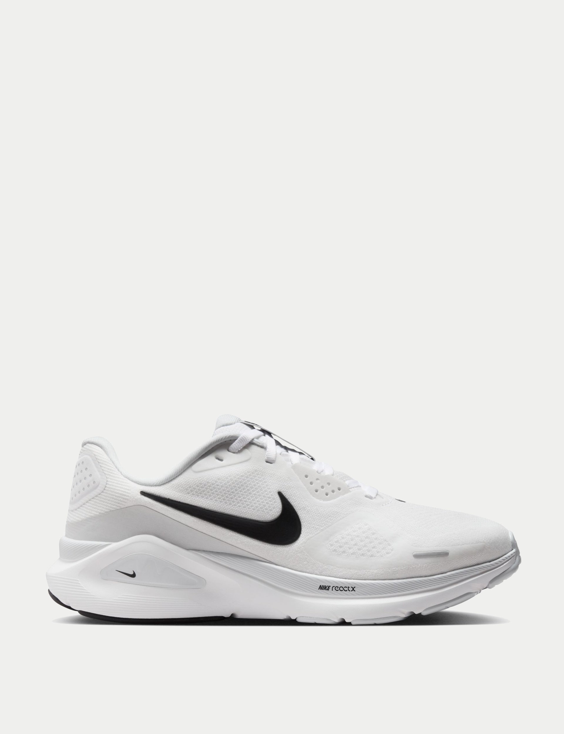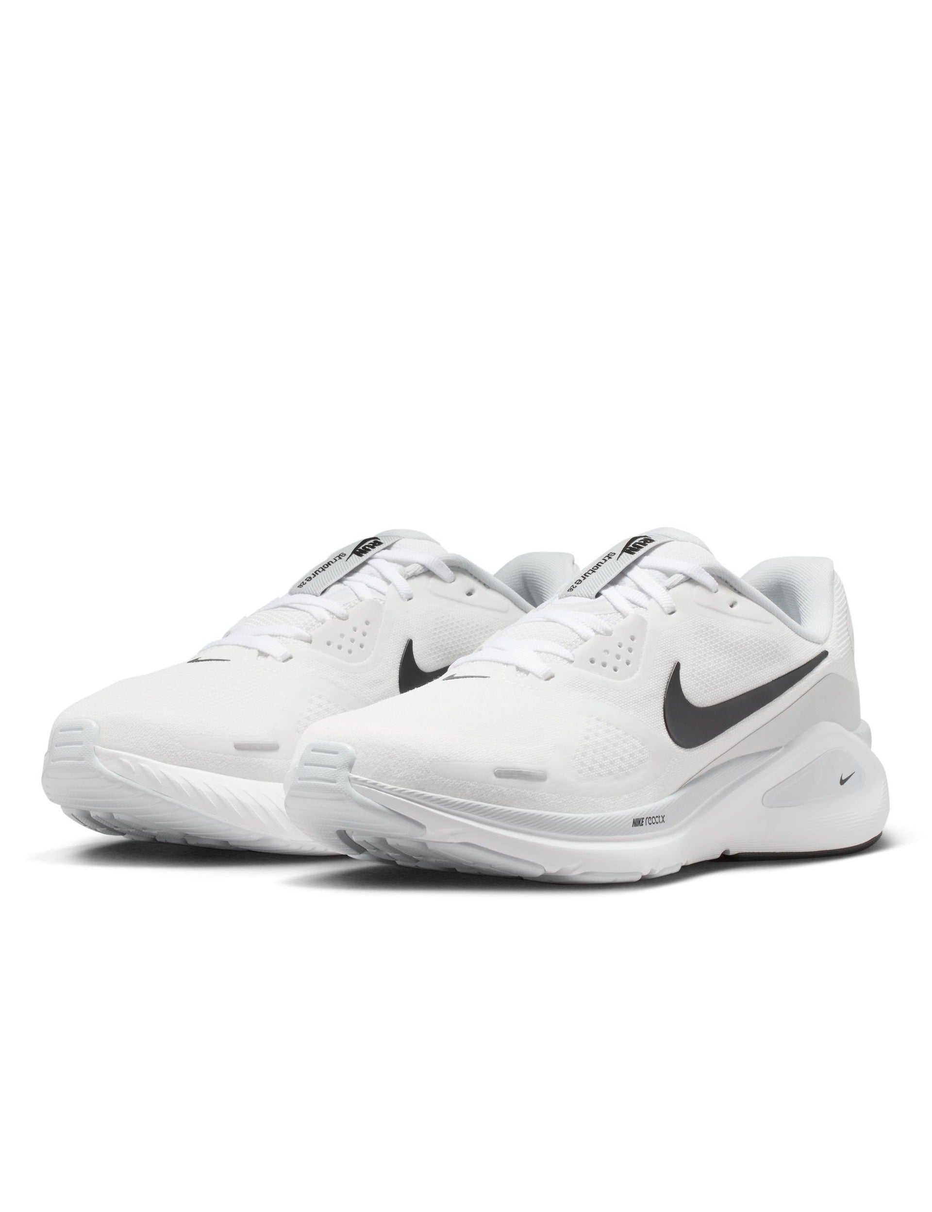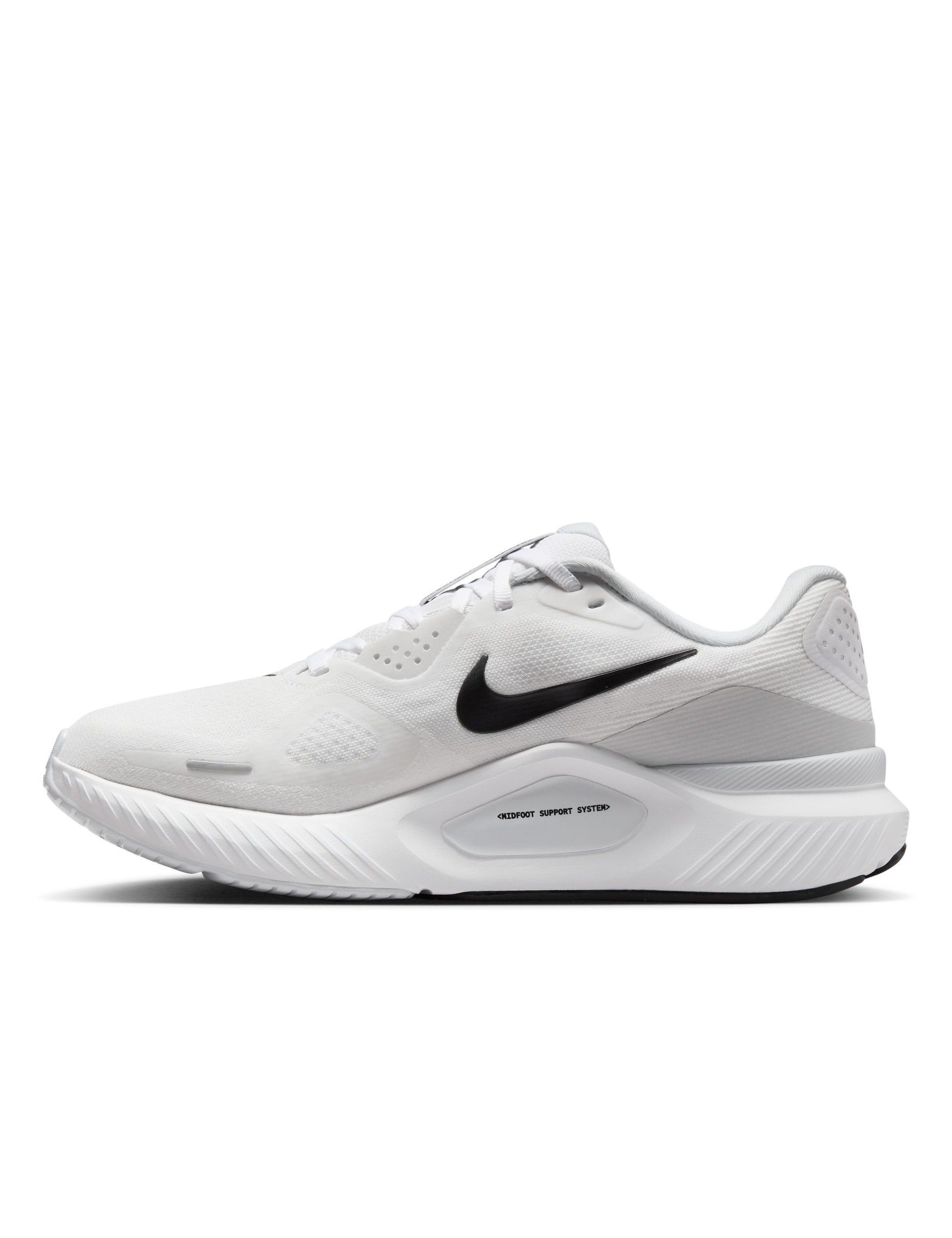 The Nike Structure 26 Shoes in White/Black/Pure Platinum are tuned for daily training with a smooth, guided feel. A full-length ReactX midsole delivers energetic cushioning and seamless transitions, while an integrated midfoot wrap supports alignment from landing to toe-off. Plush collar and tongue pair with breathable engineered mesh for a secure, comfortable fit. Durable rubber is mapped for grip where you need it, with reflective details to help you stand out.