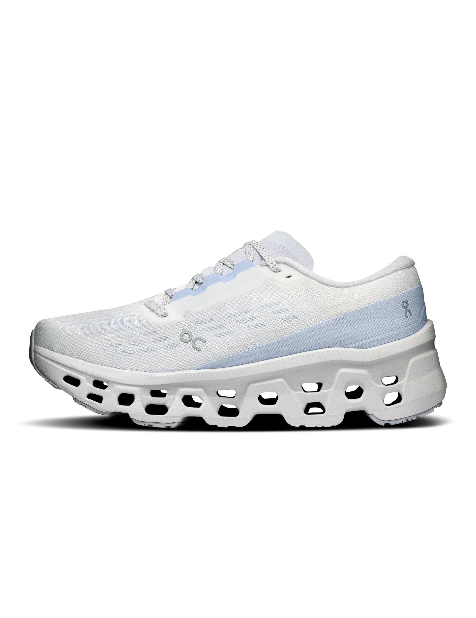 The Cloudmonster 3 in White/Frost delivers a smooth, forward-rolling ride for daily road miles. A triple-layer CloudTec midsole pairs with Helion foam and a propulsive Speedboard for energetic transitions, while the engineered knit upper enhances breathability and lockdown. An updated rocker and durable rubber outsole provide confident traction from warm-up to cooldown.
