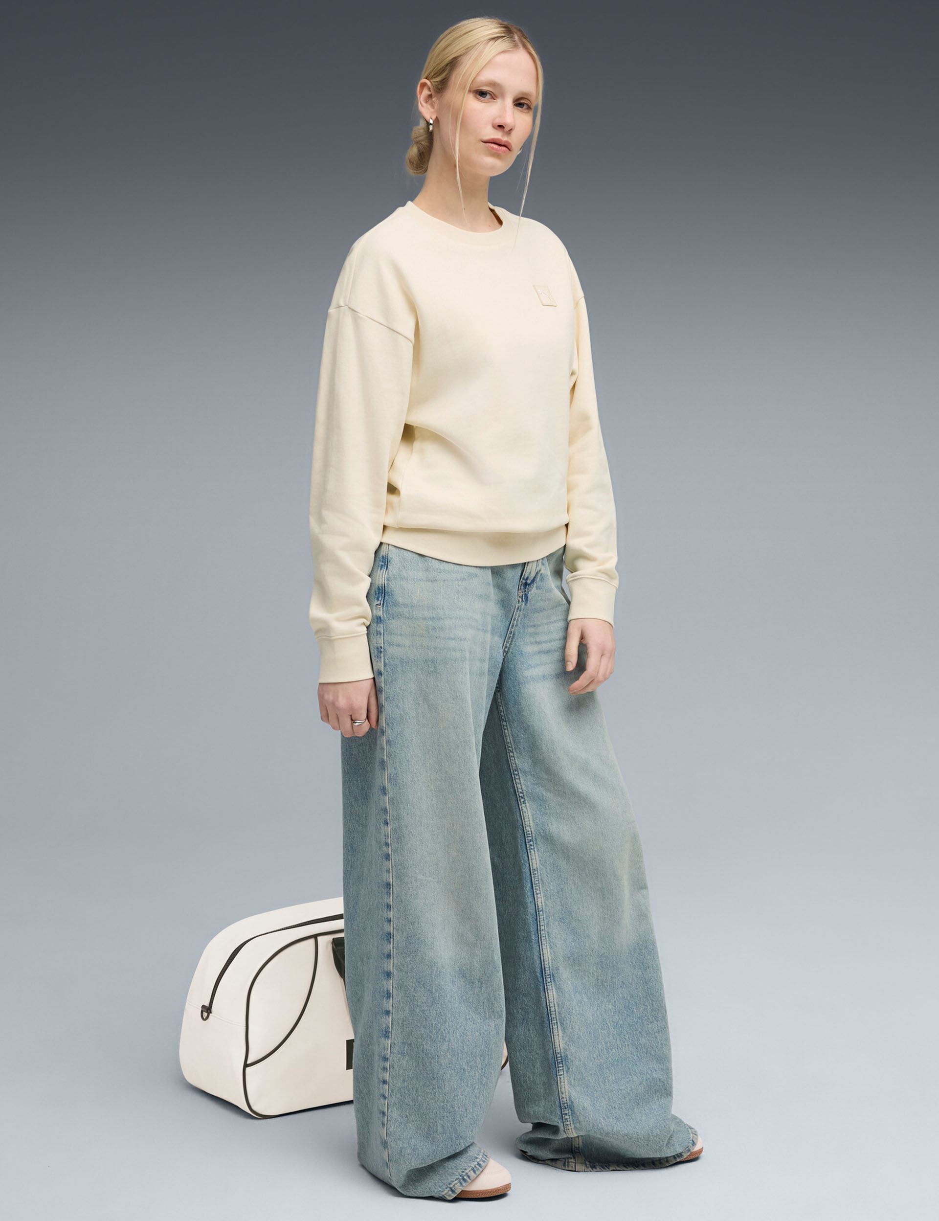The Essentials Elevated Comfort Crew is designed with a supersoft terry fabric and dropped shoulders for a laid-back, breathable design that's tough to beat. The ribbed cuffs and embroidered logo add a touch of flair, perfect for layering or lounging.