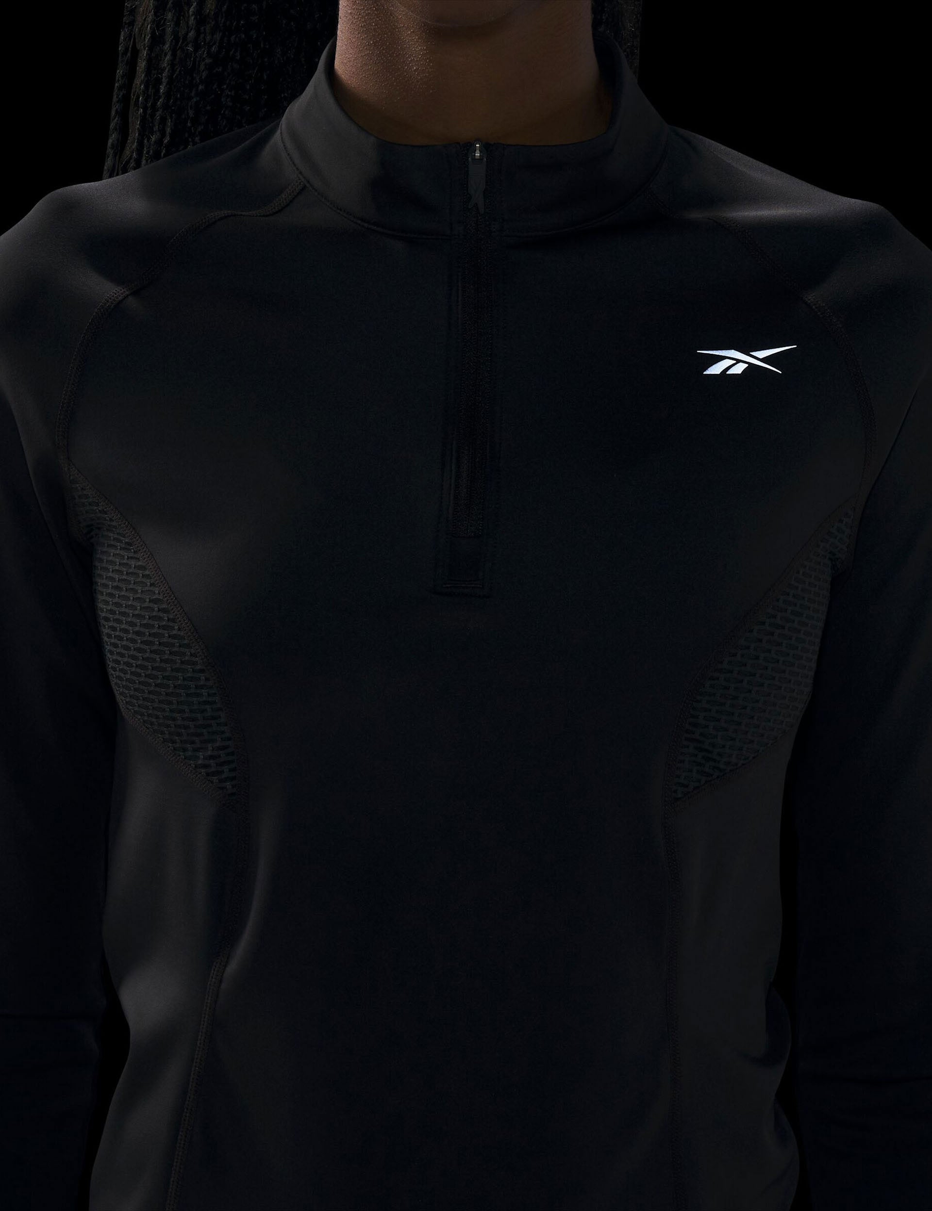 Conquer runs with the Running Quarter-Zip, designed to be an extra layer of protection. The vector-inspired mesh panelling at the front and back enhances breathability for ultimate ventilation. It's perfect for early morning runs, complete with a reflective logo, a centre back stripe, and a centre zip with reflective tape.