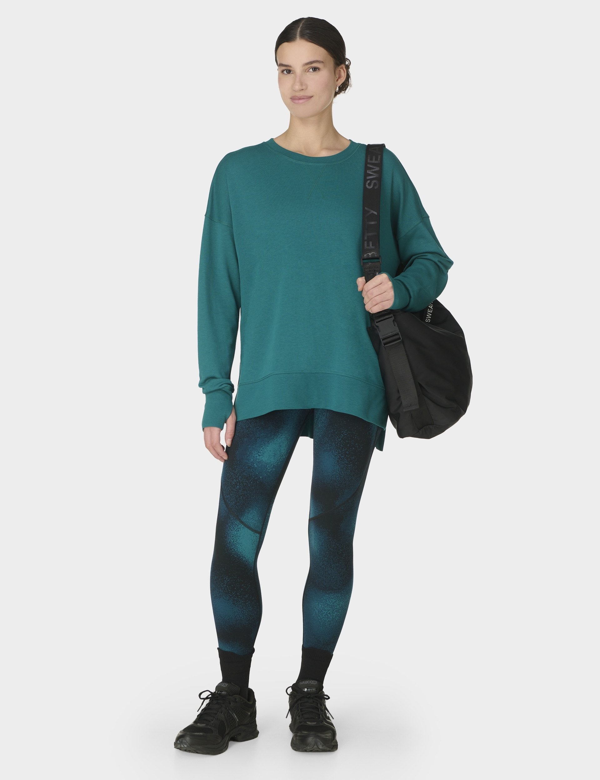 Unwind in effortless style with the After Class Longline Sweatshirt, a must for post-workout cool-downs. Its breathable blend of organic cotton and stretchy modal offers a flattering, bum-covering fit with side slits for easy layering. Dropped shoulders, cosy thumbholes, and V-stitch neck detailing make it a chic, versatile choice.
