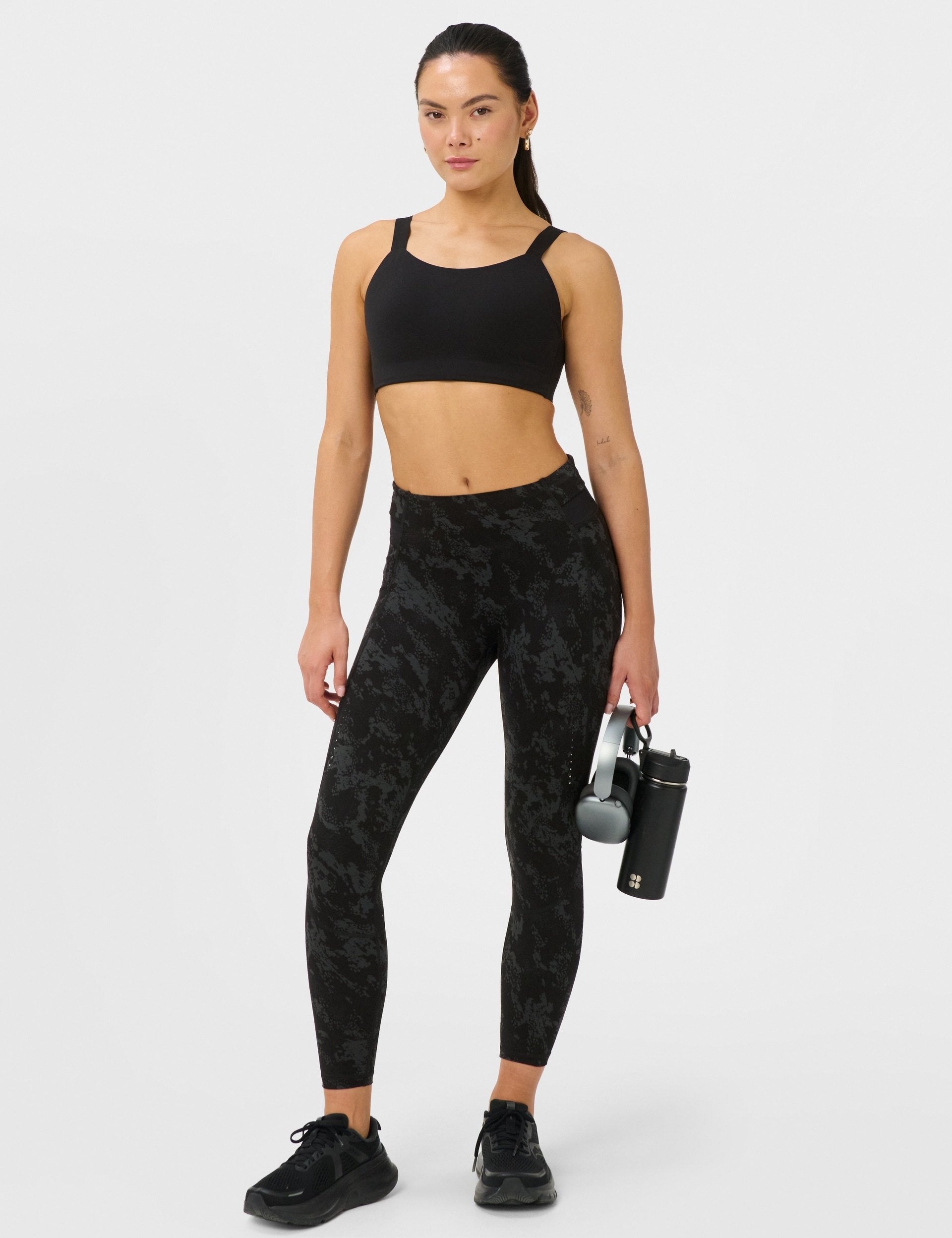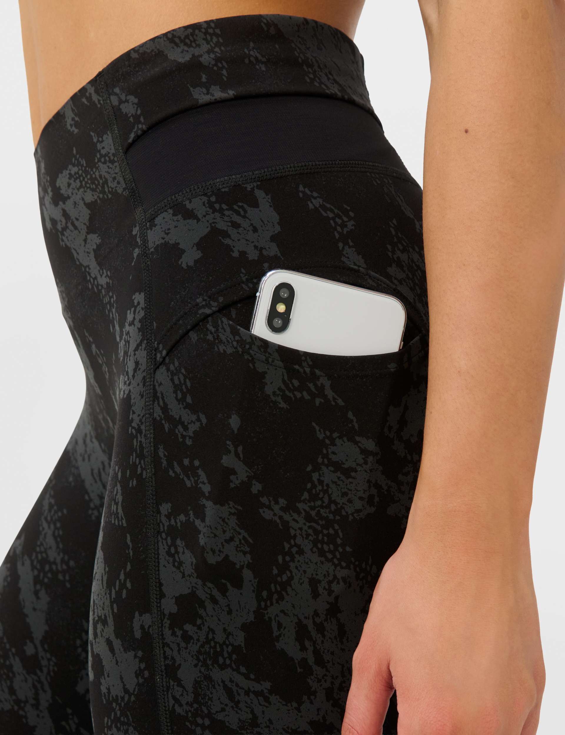 Hit your stride in Runner's High Power 7/8 Leggings in Black Cliff Face Print. Purpose-built for running, the stay-put waistband keeps distractions down while the bold print elevates every mile.