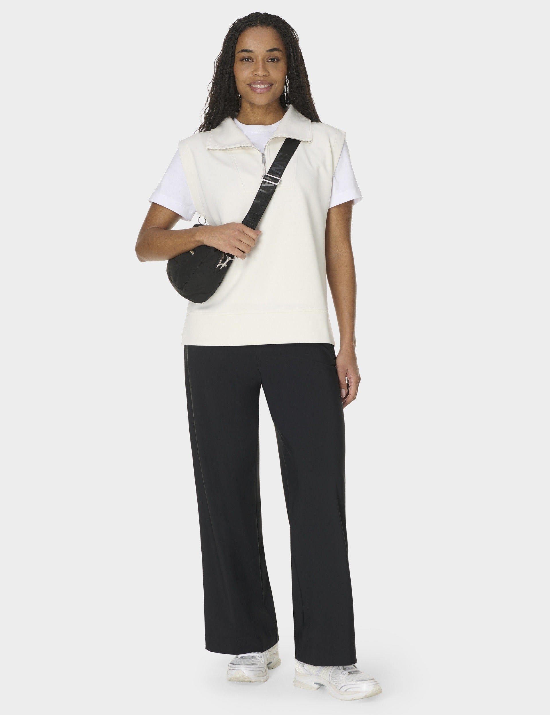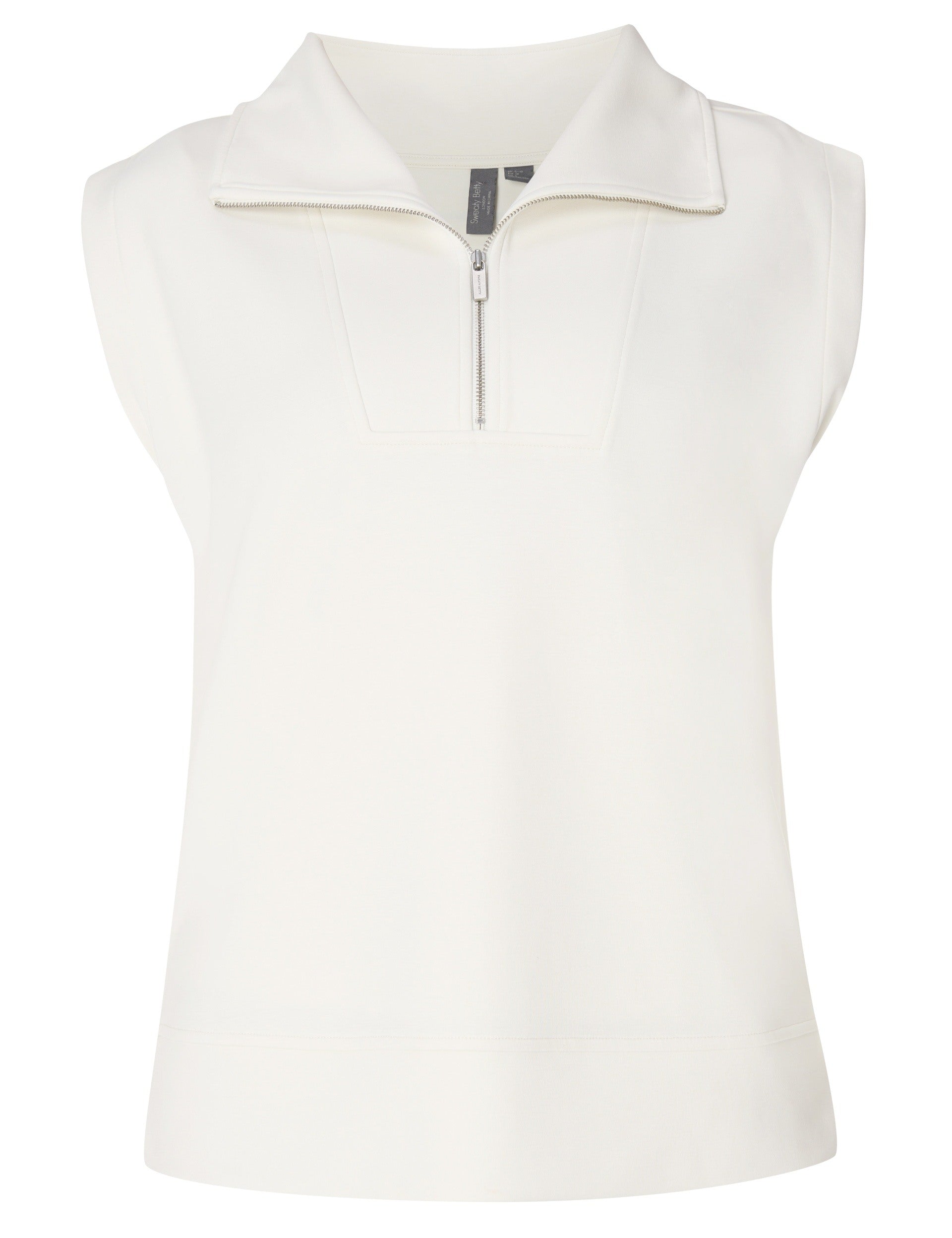 The Sand Wash CloudWeight Half Zip Sleeveless Pullover in Coconut Cream is your throw-on layer for studio to street. It delivers lightweight comfort in an easy silhouette, finished with a wide collar and polished half zip for quick ventilation. Style it over bras, tees or leggings for elevated all-day wear.