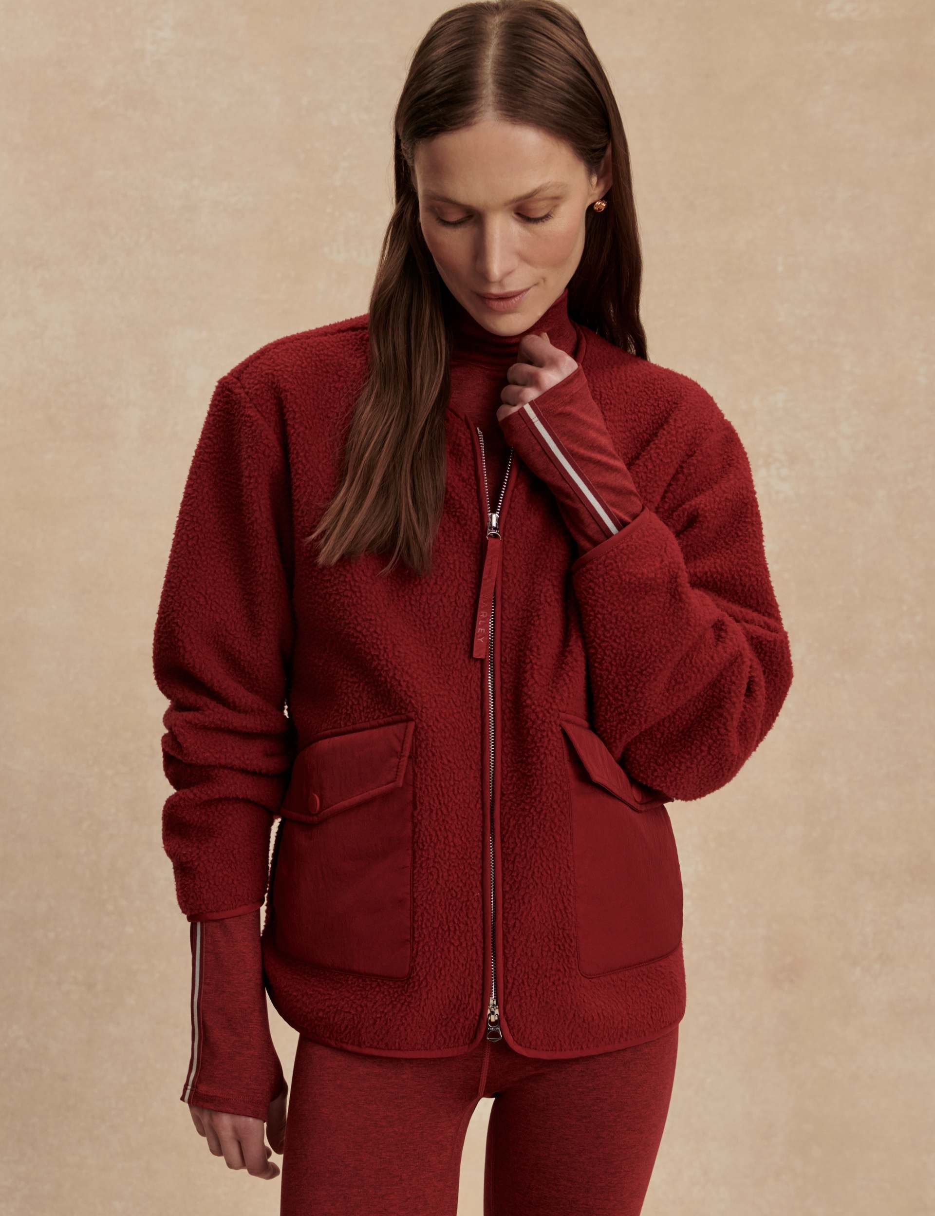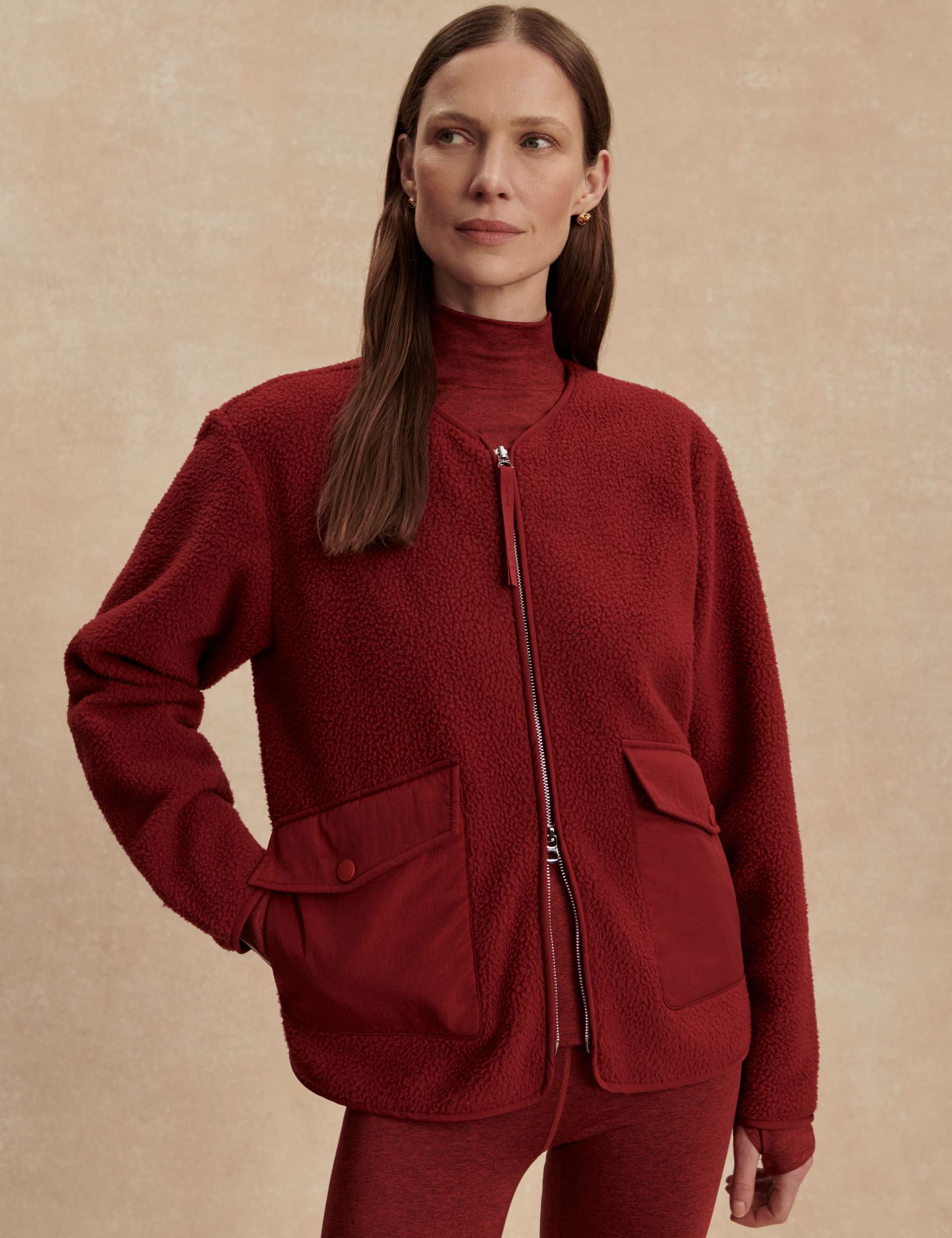 Marina Collarless Fleece - Red Dahlia